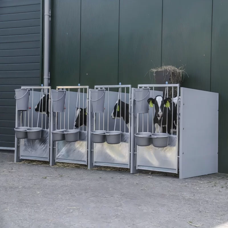 Practical usability is another key advantage of this product. The hutch can be easily positioned, relocated, or reorganized to suit different farm layouts. Its compatibility with feeding buckets, water systems, and optional outdoor exercise pens makes daily management more efficient. Farmers can customize their calf-rearing setup based on herd size, space availability, and management preferences.